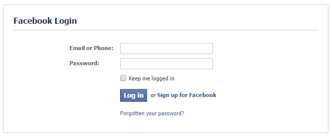 Next, you will be asked to log into your Facebook Account via the following screen. Enter your details and select the Log in button to continue.