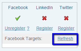 Once you have entered your Facebook login details and returned to HQi, you should now click the refresh button next to Facebook Targets.