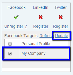 Once you have clicked update you will now see that the My Company page sits underneath the Facebook Targets and is successfully linked.